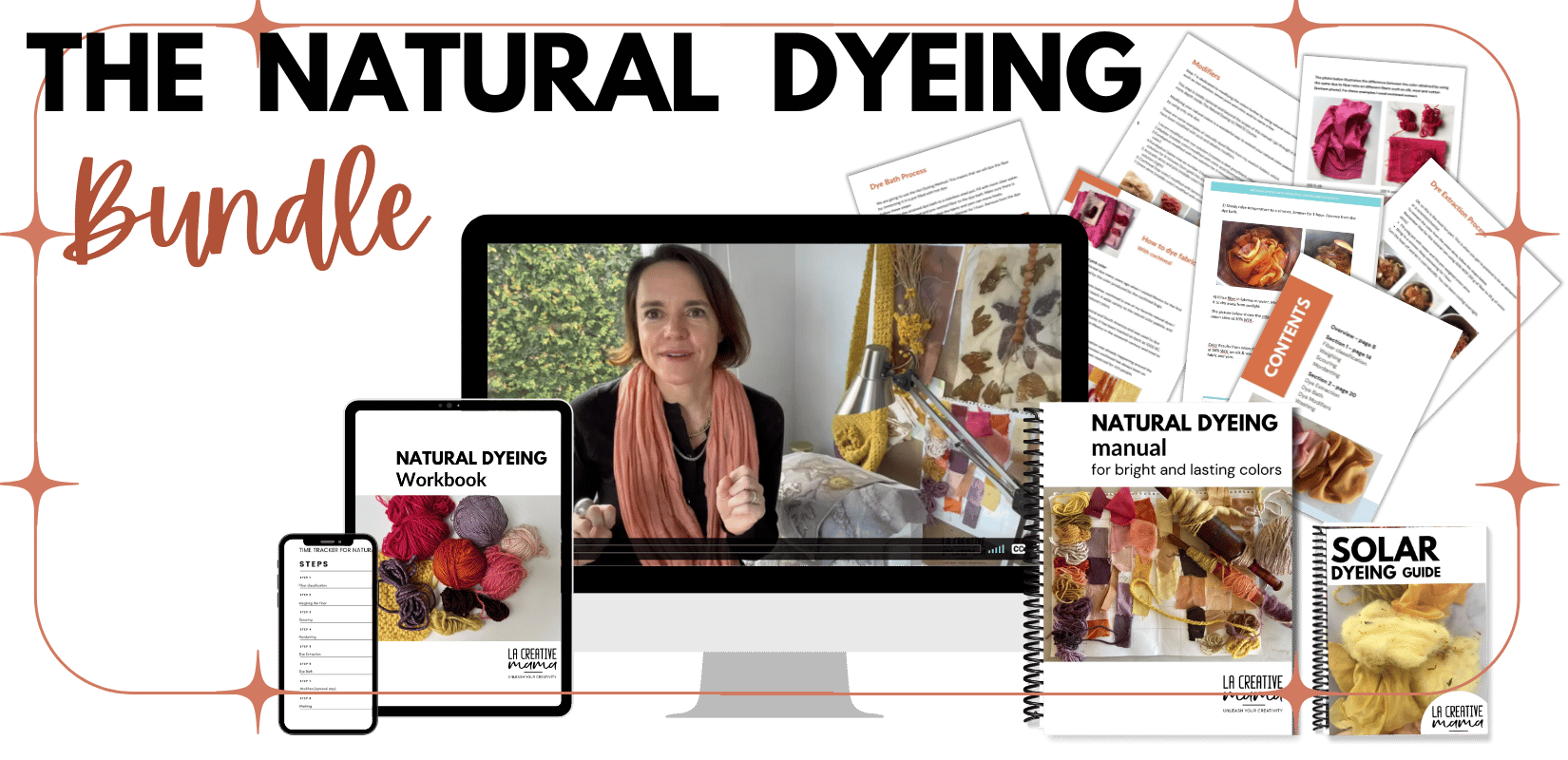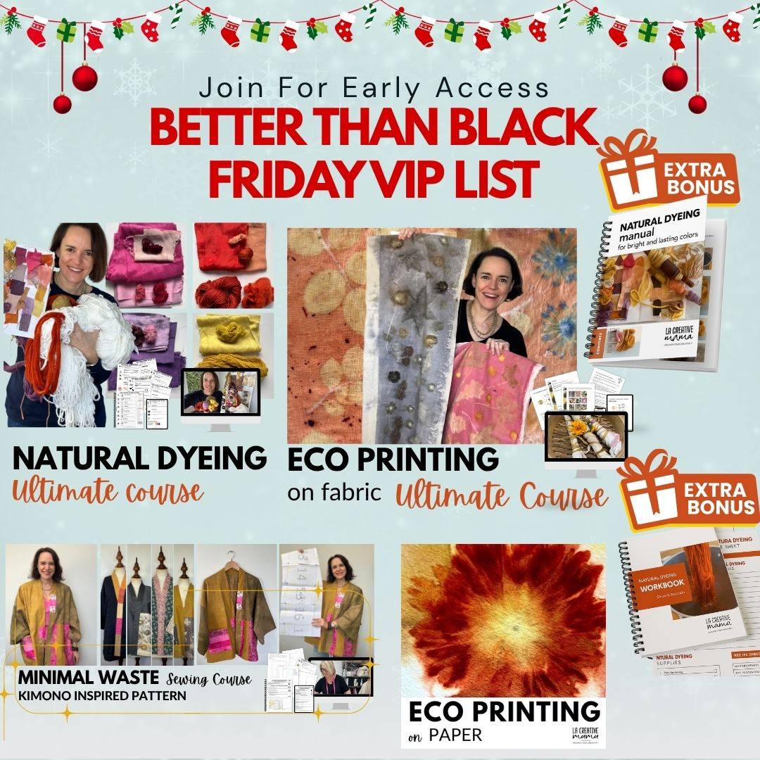 Welcome to the eco friendly world of natural dyeing and eco printing on fabrics! Discover the 10 BEST NATURAL DYES you need to be using (for fabric and yarn)…so that you can create bright natural pinks, reds, yellows and purples that ACTUALLY last and don’t wash away - AND START UPCYCLING AND TRANSFORMING OLD CLOTHES AND FABRICS!