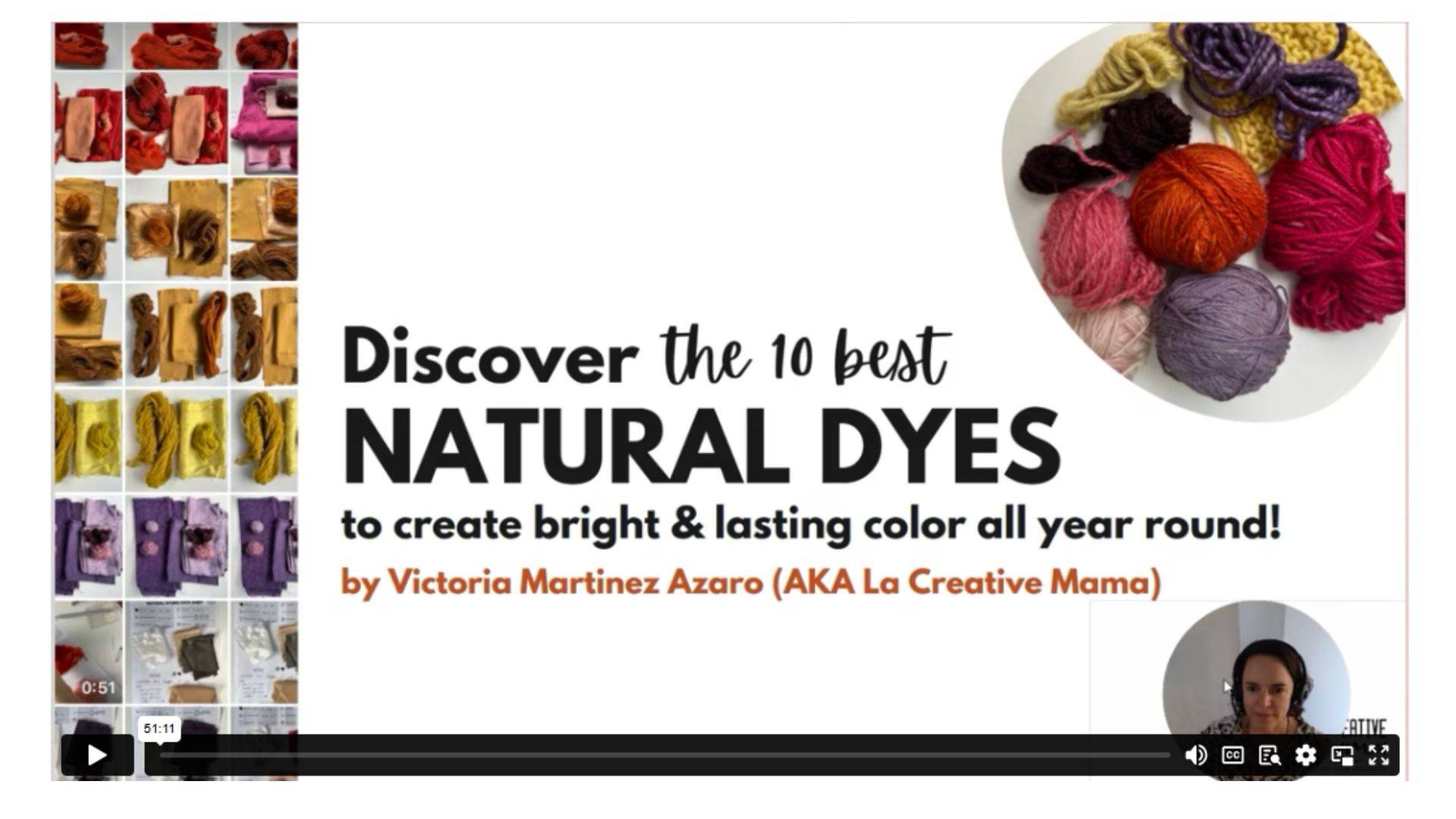 Hi Reader, Ready to make BRIGHT and LONG LASTING color to dye your fabrics and yarns using natural dyes? If you are not getting bright natural colors on your fabrics and yarns that last and don't wash away (that you can use them to sew, wear forever, knit or crochet beautiful jerseys and blankets) then you are missing very important info!!!! Join me in this ON DEMAND FREE TRAINING and discover which are THE 10 BEST NATURAL DYES you need to use to create stunning pinks, reds, purples, and...
